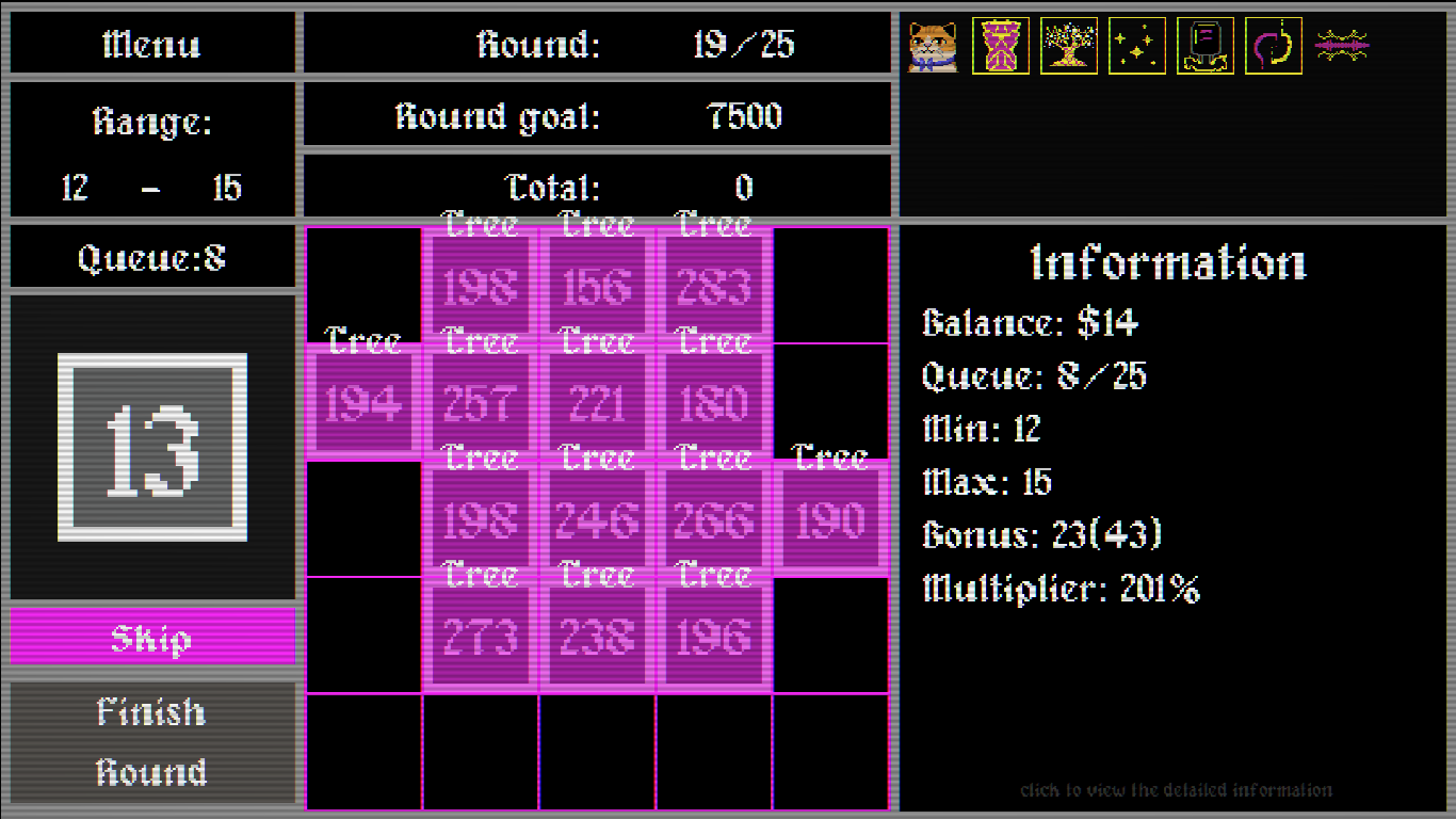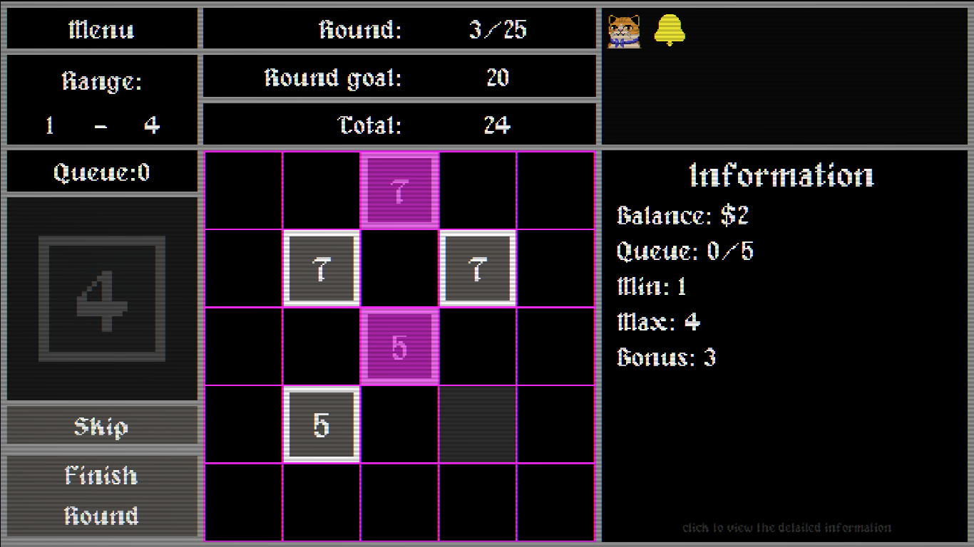 Your workspace is a 5x5 grid. Place numbers wisely each round to maximize your score.